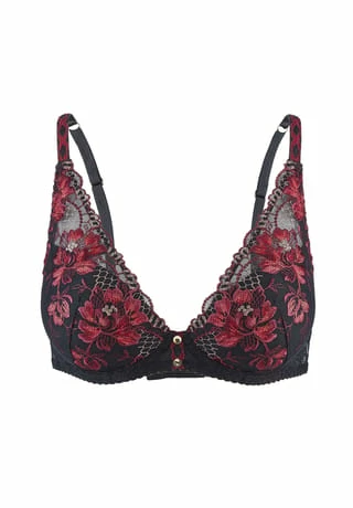 – Triangel-BH mit Bügel – florale Stickerei – filigrane Jacquard-Spitze – goldfarbenes Lurex-Garn – Cups mit blickdichten Halbschalen – niedriger Mittelsteg – längenverstellbare Träger – zweireihiger, 3-fach verstellbarer Häkchenverschluss