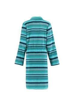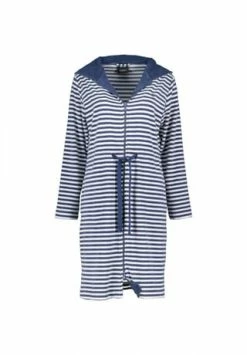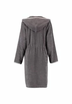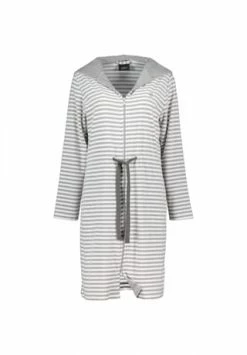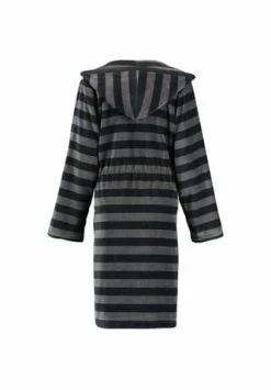 Cawö Bademantel Damen Kurzmantel Mit Reißverschluss Und Kapuze Streifen 2112 Schwarz – 97 Schwarz