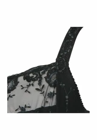 Dieser sinnlich-feminine Bügel-BH der Linie Provence begeistert mit ausdrucksstarker Stickerei auf Cups und Trägern sowie einem perfektem Fit. Die 3-geteilte Schnittform kreiert ein volles, rundes Dekolleté, sie stützt und zentriert die Brust zugleich. Die elastische Abschlußkante schmiegt sich perfekt an die Körperform an. Mit Komfort-Bügel Akzentuierte Formung Dekorativer Außenträger ist elastisch und längenverstellbar U-förmiger Rücken Perfekte Passform durch dreiteiliges Cup Trägerbreite, Rücken und Mittelsteg angepasst an den Größenverlauf Fester Halt durch doppellagiges Cup-Material und seitliche Cupstütze 3-fach verstellbarer Soft-Seal Haken-Ösen-Verschluss Hochwertige und ausdrucksstarke Stickerei kombiniert mit dekorativem Abschlussband Logo-Applikation im Rücken und Stickereimotiv am Steg