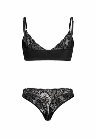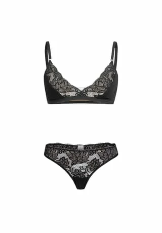 – Set aus String und Bralette – aus MicroModal und recyceltem Polyamid – im Feinwaschgang und mit Feinwaschmittel waschen – vor Salz- und Chlorwasser schützen – doppellagige Cups ohne Bügel und Padding – längenverstellbare Träger – gerader, elastischer Beinabschluss – Zwickel mit Modal unterlegt – PETA-Approved Vegan – fällt klein aus, Empfehlung: 1 Nummer größer kaufen – das Model ist 1,68 m groß und trägt den String in Größe 38