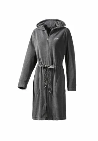 Mit einem praktischen Reißverschluss präsentiert sich der JOOP Damen-Bademantel 1659 aus der Serie ACTIVE. Er besteht aus einem pflegeleichten Mischgewebe, das sich auf der Haut wunderbar leicht und weich trägt. Eine angenehme Kapuze wärmt nach dem kühlen Nass und verleiht dem Bademantel eine sportliche Optik.Die JOOP! Designer-Kollektion verbindet einen großen Markennamen mit exklusiver Optik und höchster Qualität. JOOP! Damen Bademäntel – Größentabelle: 32/34 – XS36/38 – S40/42 – M44/46 – L48/50 – XL