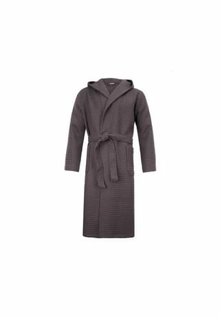 Klassisch geschnittener Kapuzen-Bademantel mit strukturierter Waffelpiquée-Oberfläche