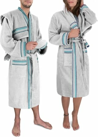 Dieser Bademantel aus 100 % Bio-Baumwolle überzeugt durch schickes Design und nachhaltige Herstellung. Eigenschaften • Bademantel aus 100 % natürlicher Bio-Baumwolle • Atmungsaktives und weiches Material welches Feuchtigkeit sehr gut aufnimmt, und dich schnell trocknet • Zwei Taschen und Bandgürtel mit Schlaufen, damit der Mantel auf genau deine Größe angepasst werden kann • Grammatur: 340 g/m² Material • 100 % natürliche und hochwertige Bio-Baumwolle, Frottee Pflegehinweise • Trocknergeeignet • Maschinenwaschbar bei 40 °C Warum Bio-Baumwolle? • 90 % weniger Wasserverbrauch bei der Produktion von Bio-Baumwolle gegenüber konventioneller Baumwolle • Herstellung ohne Pestizide – gut für dich und die Bauern • Für Allergiker geeignet • Gut für dich: Gib deiner Haut was sie verdient • Gut für deine Umwelt • Hergestellt in Europa – MADE IN EUROPE • Bio-Baumwolle: Ausgezeichnet mit GOTS (CU815096) Material: Bio-Baumwolle