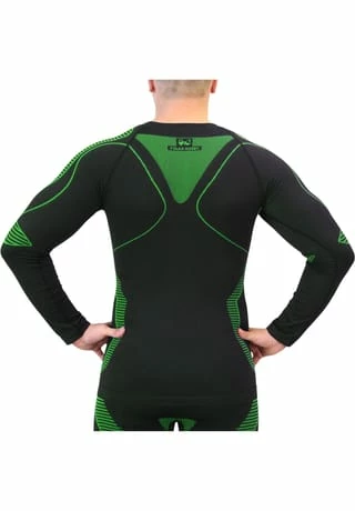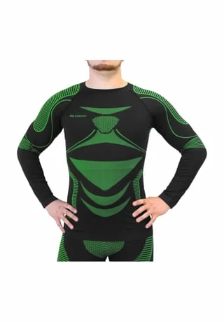 Im Skibereich, auf dem Motorrad oder in der Freizeit ist es nicht nur wichtig, eine atmungsaktive Jacke zu tragen, auch die darunterliegende Unterwäsche spielt eine wichtige Rolle. Denn selbst hochwertige Funktionsbekleidung nützt nichts, wenn sich an der Unterwäsche Feuchtigkeit ansammelt. Die körpernahe Passform und das klimaregulierende, atmungsaktive Material sorgen auch bei körperlicher Anstrengung für guten Feuchtigkeitsabtransport. Entstandener Schweiß oder Nässe werden schnell vom Körper aufgenommen und nach Außen abgegeben. Dieser Prozess lässt die Haut schnell trocknen und sorgt auch bei niedrigen Temperaturen für eine konstante Körperwärme. Somit eignet sich diese Funktionsunterwäsche für jede Jahreszeit. Ein faltenfreier Sitz, der besondere Raglanschnitt und elastische, weiche Abschlüsse an Rundhalsausschnitt sowie Saum sorgen für hohen Tragekomfort. Die komfortablen Flachnähte, die reibungsfreie Bewegungsabläufe ermöglichen, verhindern gleichzeitig schmerzende Druckstellen. Der hohe Anteil an Polyamid macht die Unterwäsche besonders reißfest, knitterarm und widerstandsfähig. Des Weiteren ist sie resistent gegen Bakterien und schützt somit vor unangenehmer Geruchsbildung. Der leichte Kompressionsdruck auf die beanspruchte Muskulatur erweitert die Gefäße und verbessert den Blutfluss sowie die Sauer- und Nährstoffversorgung. Dieser gezielte Druck steigert die Leistungsfähigkeit bei sportlichen Aktivitäten. Das Funktionsunterhemd wird gerne bei Sport- und Freizeitaktivitäten, wie beim Laufen, Radfahren, Wandern, Joggen oder Motorradfahren als erste Bekleidungsschicht verwendet, es kann aber auch einzeln angezogen werden.