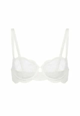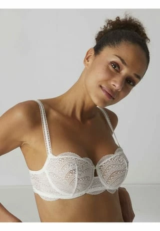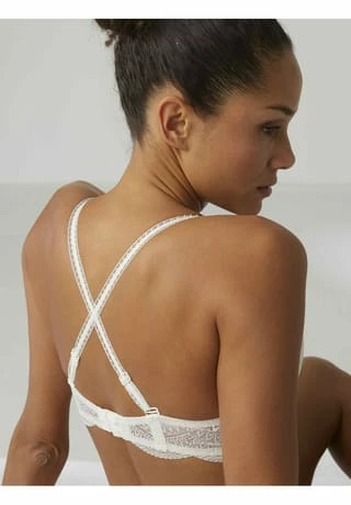 – Bügel-BH, Halbschale – weiche Jacquard-Spitze – ungefütterte Cups – halbhoher Mittelsteg für sicheren Halt – Bogenspitze an Obercup und Unterbrust – längenverstellbare, variable Träger für multiple Tragevarianten – Häkchenverschluss am Rücken