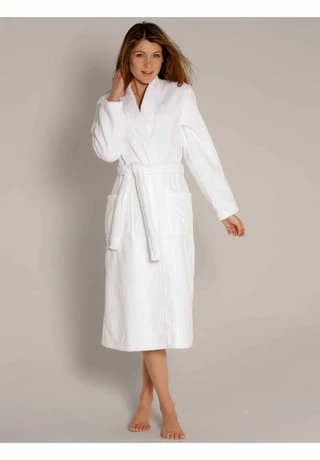 – saugfähiger Bademantel im Kimono-Stil – kuschelig weiches Material – sehr gute Saugeigenschaften – mit passendem Gürtel zu schließen – große, aufgesetzte Taschen – ideal für Sauna, Spa und Sport – Länge 120 cm – bitte vor dem ersten Tragen waschen – trocknen im Wäschetrockner erspart das Bügeln, und das Material bleibt herrlich flauschig – herausgezogene Schlingen kurz abschneiden – Flächengewicht: 360 g/m² – Polybag-Verpackung aus 100% recycelbarem Polyethylen