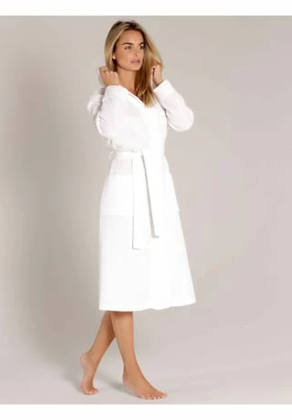 – Bademantel mit Kapuze – sehr saugfähig – leichtes und luftiges Waffelpiqué – angenehmer Tragekomfort – sportives Material – reine Baumwolle – Material vorbehandelt, daher kein Einsprung – Länge 120cm – Flächengewicht: 200 g/m²