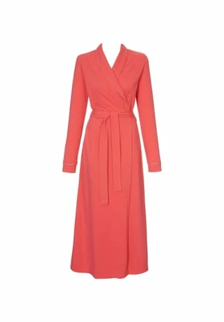 – langer Bademantel mit Schalkragen in Polo Piqué-Qualität – 100% natürliche Baumwolle – leicht und gut geeignet für Reisen – Feuchtigkeit wird gebunden und nach außen getragen – schnelltrocknend – körpernaher Schnitt mit femininer Taillierung – Einschubtaschen an den Seiten – Bindegürtel – Länge 130cm – Flächengewicht: 190 g/m² – Polybag-Verpackung aus 100% recycelbarem Polyethylen